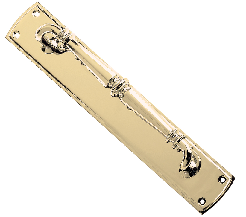 Ornate Pull Handles On Backplate (382mm x 65mm), Polished Brass
