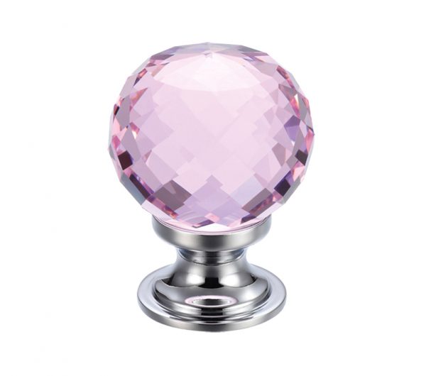 Pink Facetted Glass Ball Cupboard Knobs (25mm Or 30mm), Polished Chrome Base