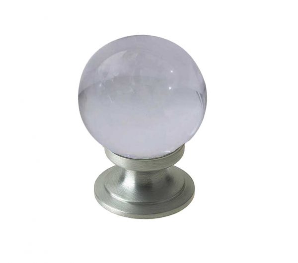 Plain Clear Ball Glass Cupboard Door Knob, Satin Chrome