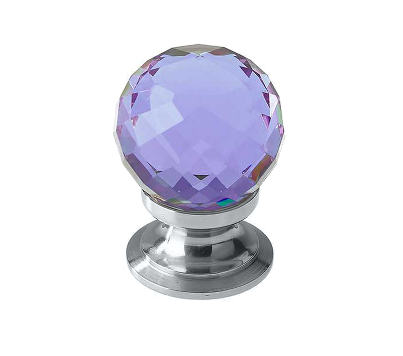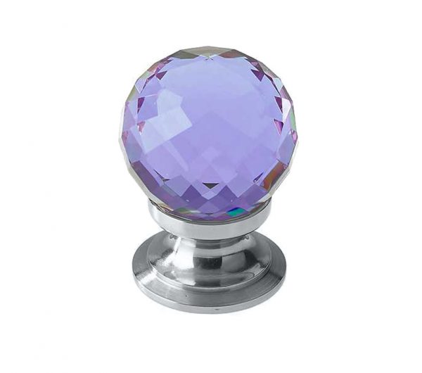 Purple Coloured Faceted Glass Cupboard Door Knob, Polished Chrome