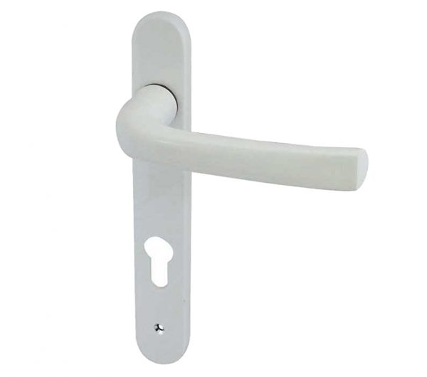 PVCu Lever Door Handles (220mm Backplate – 92mm C/C Euro Lock), White