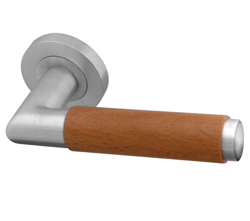 Reguitti Havanna Light Wood Door Handles On Round Rose