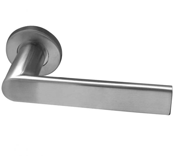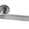Sandrine Door Handles On Round Rose, Satin Stainless Steel (sold in pairs)