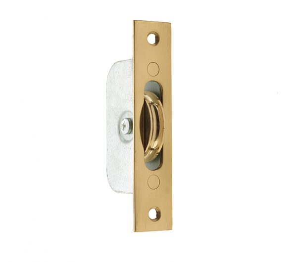 Sash Window Axle Pulley, Polished Brass With Brass Roller