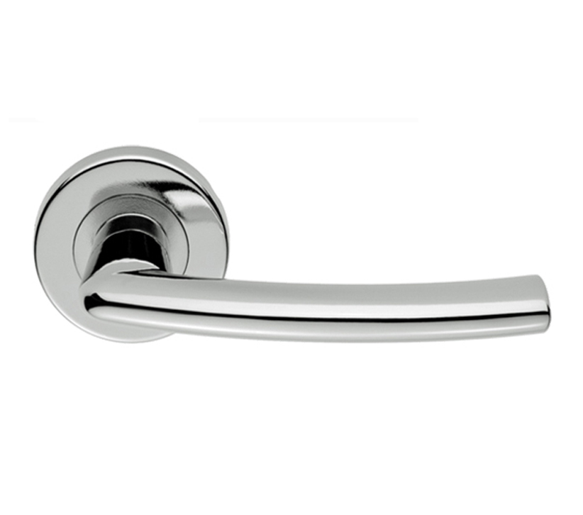 Serozzetta Dos Door Handles On Round Rose, Satin Chrome (sold in pairs)