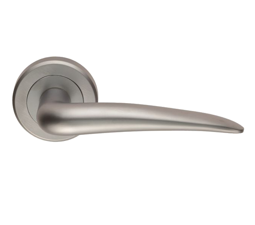 Serozzetta Tempest Door Handles On Round Rose, Satin Chrome – (sold in pairs)