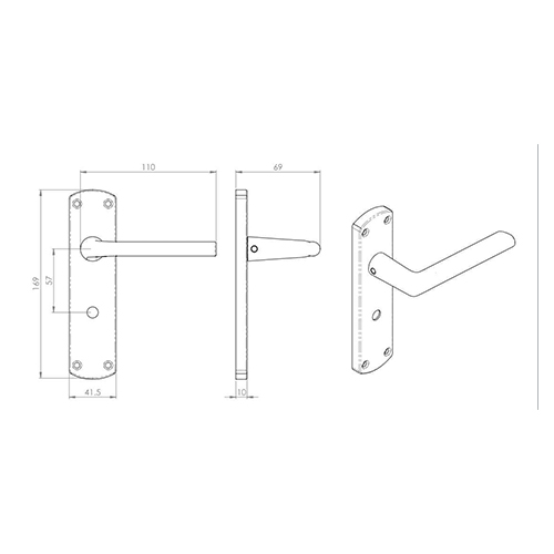 Dimensions: Backplate – 169mm x 41.5mm x 10mm, Lever length 110mm, Projection 69mm