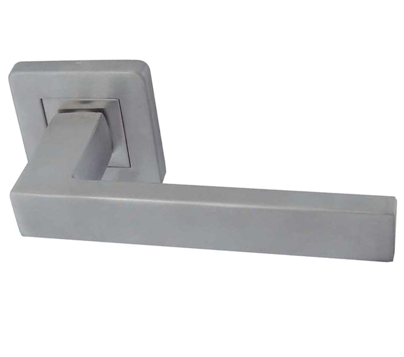 Sirius Door Handles On Square Rose, Satin Stainless Steel (sold in pairs)