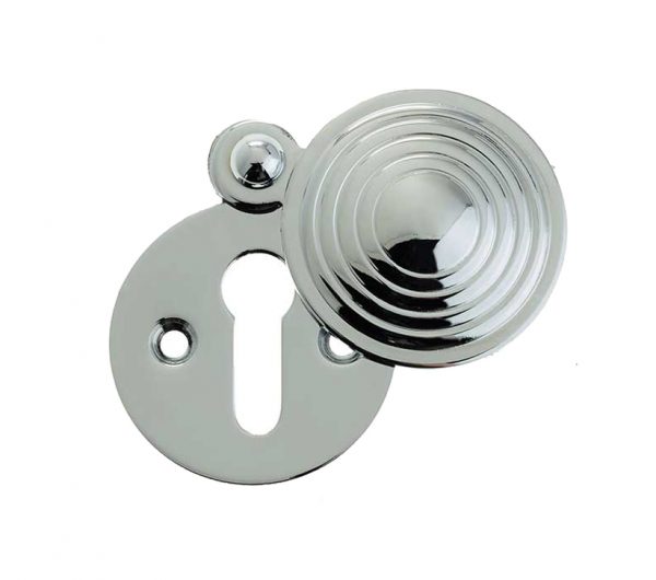 Standard Profile Reeded Covered Escutcheon, Polished Chrome
