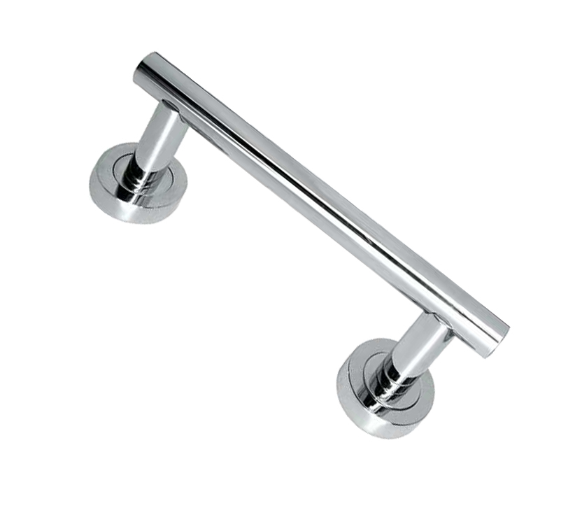 Straight Pull Handle On Rose (174mm OR 250mm c/c), Polished Chrome