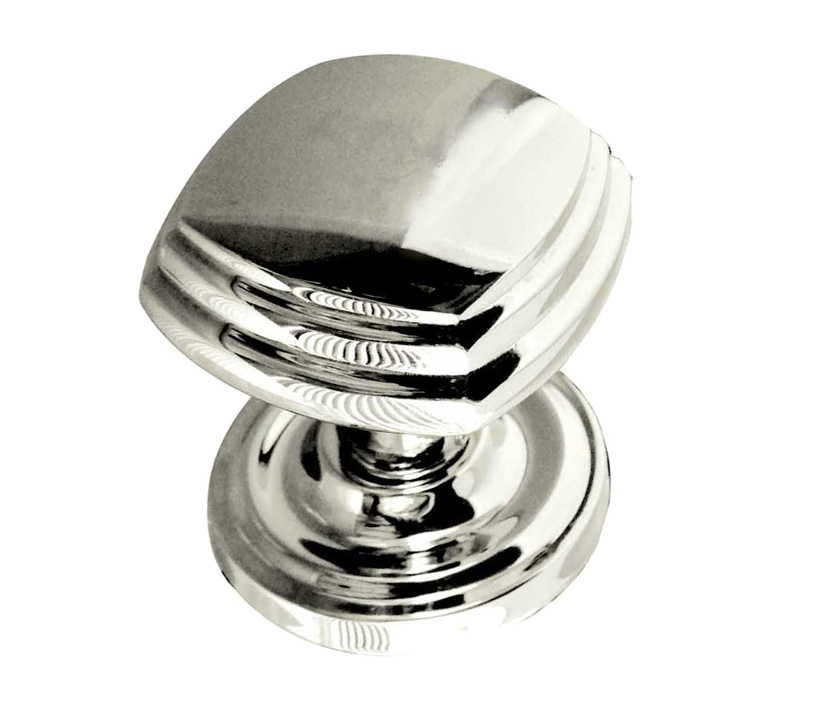 Tiered Square Mortice Door Knob On Round Rose, Polished Chrome (sold in pairs)