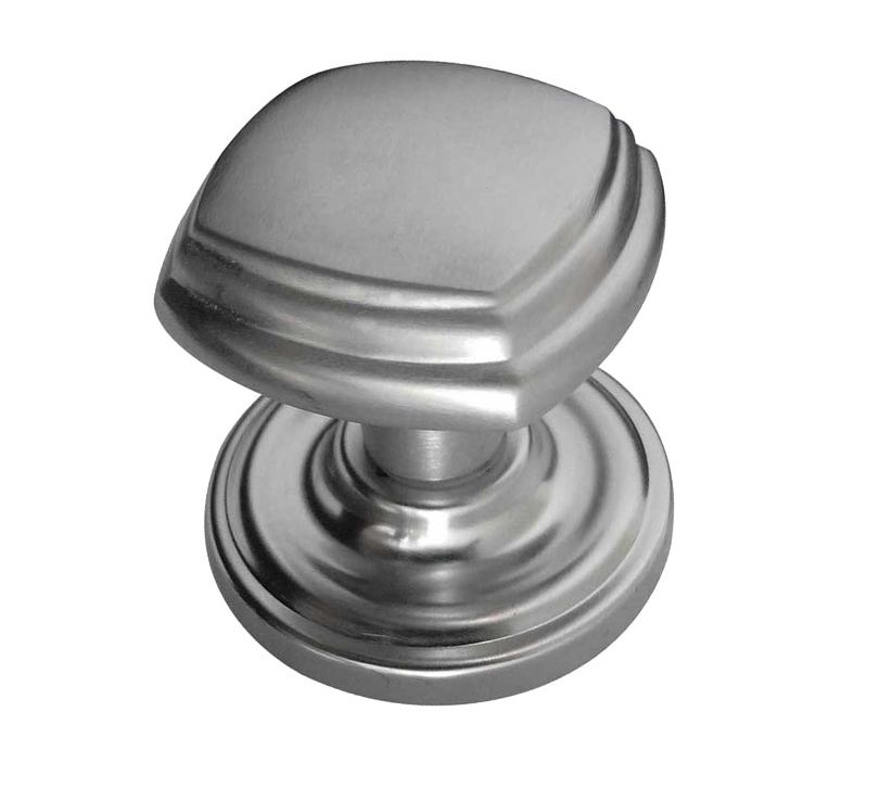 Tiered Square Mortice Door Knob On Round Rose, Satin Chrome (sold in pairs)