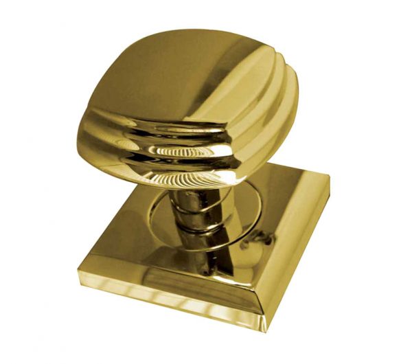 Tiered Square Mortice Door Knob On Square Rose, Polished Brass (sold in pairs)