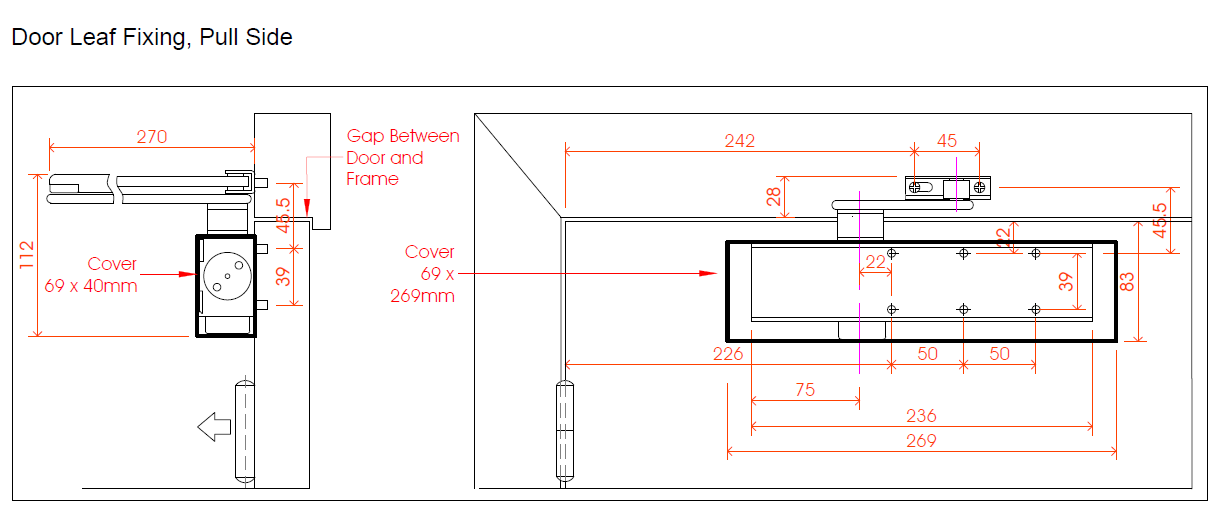 - Max door width pull-side is 1250mm wide, push-side 1100mm