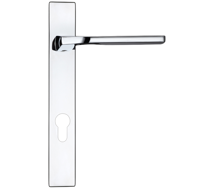 Vela Euro Lock Multi Point Door Handles On Narrow 220mm Backplate, Polished Chrome (sold in pairs)