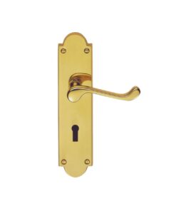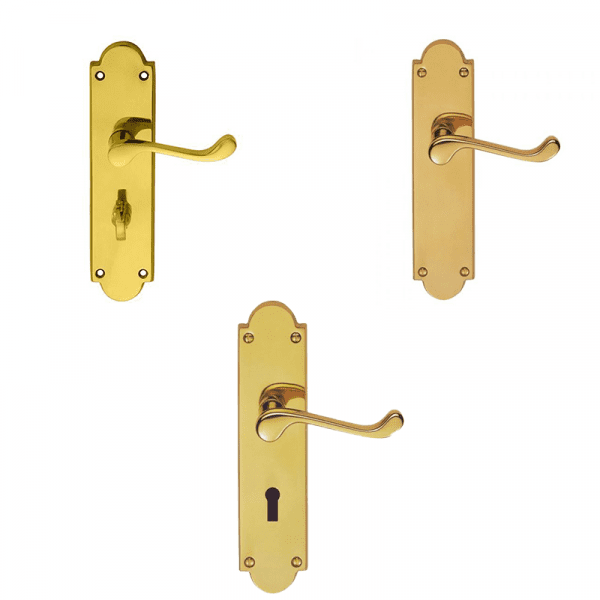 Victorian Shaped Scroll Door Handle On Backplate – Polished Brass Finish