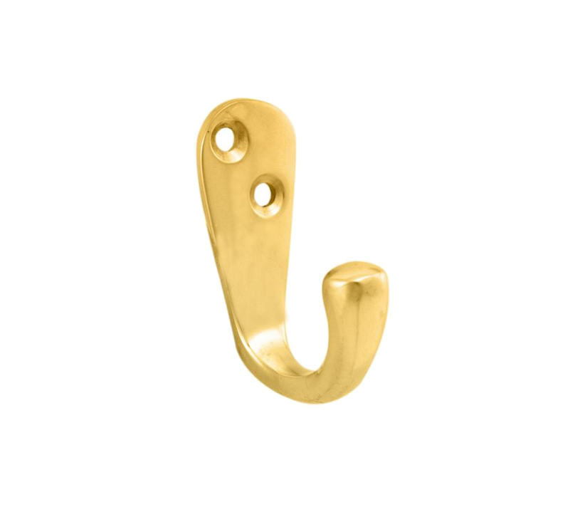 Victorian Single Robe Hook, Polished Brass