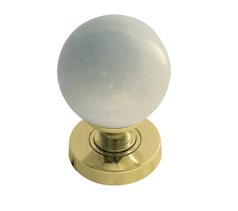 White Marble Mortice Door Knob, Polished Brass (sold in pairs)