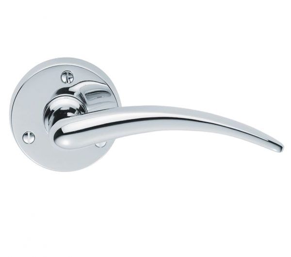 Wing Door Handles On Round Rose, Polished Chrome (sold in pairs)