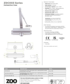 - Suitable for fitting inward or outward opening doors (Parallel arm bracket supplied)
