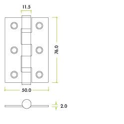 Zoo Hardware ZHSS232-MB Hinges – Ball Bearing 76mm x 50mm x 2mm Square Corner – Matt Black